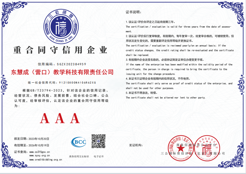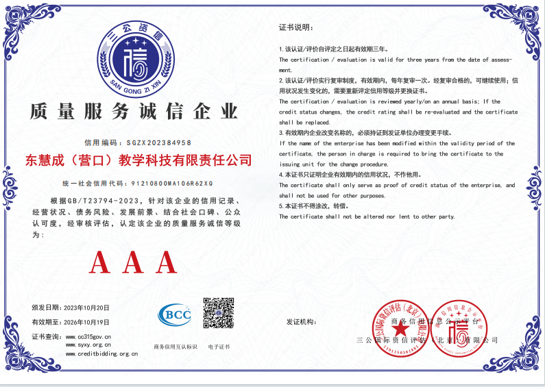歡迎登陸東慧成(營口)教學(xué)科技有限責(zé)任公司